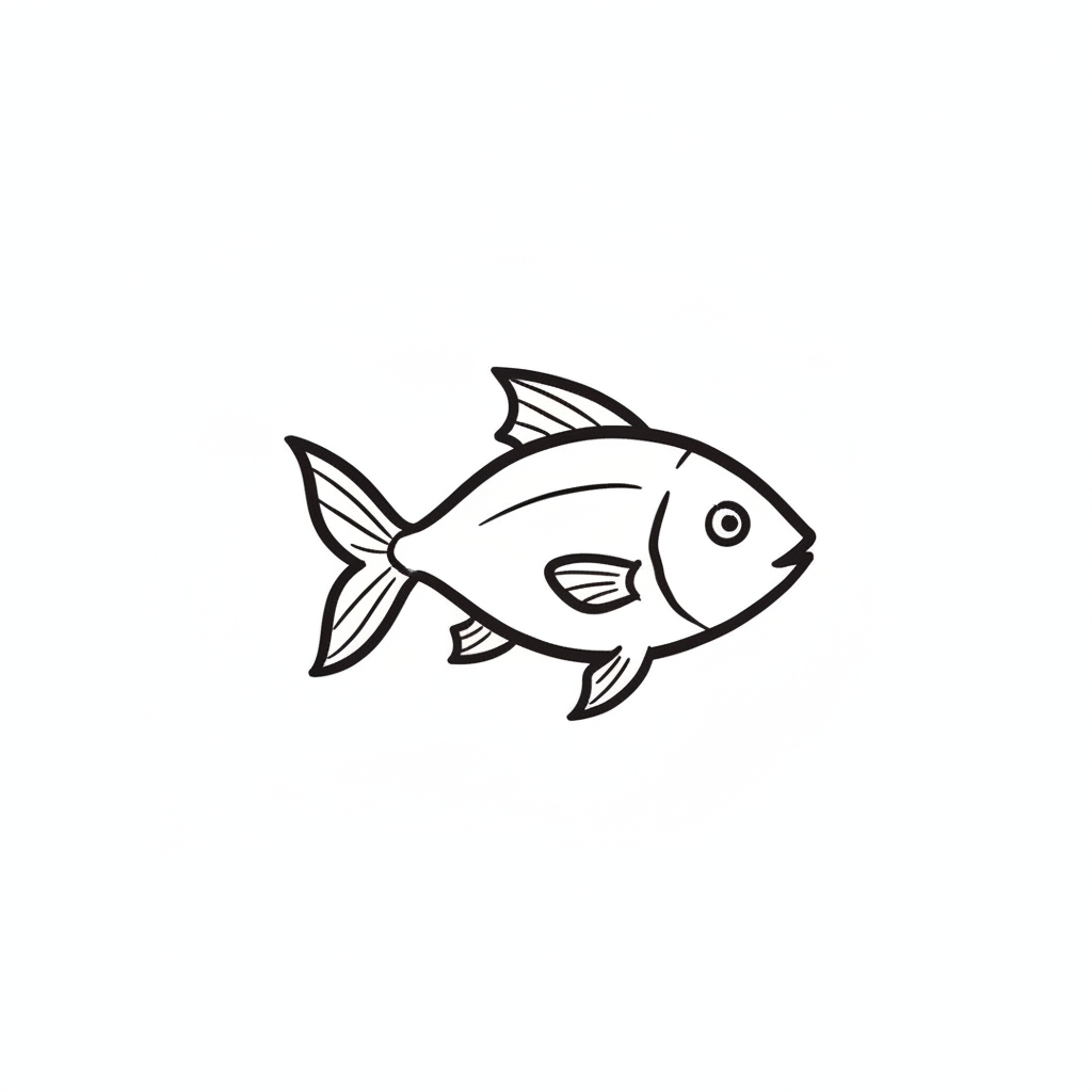 Ein einfacher, stilisierter Fisch in schwarz-weiß.
