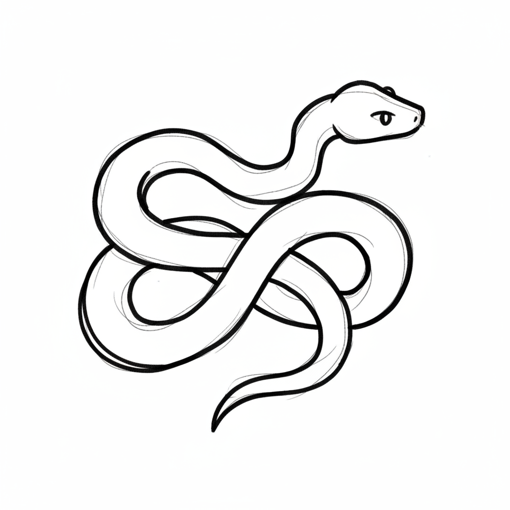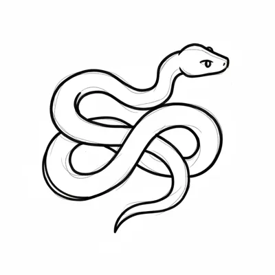 Eine geschwungene Schlange in schwarz-weißem Stil.