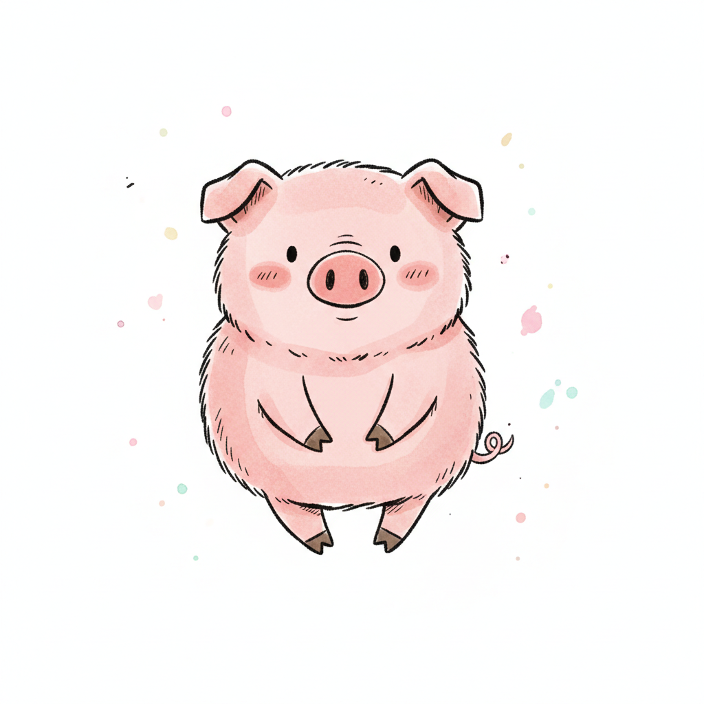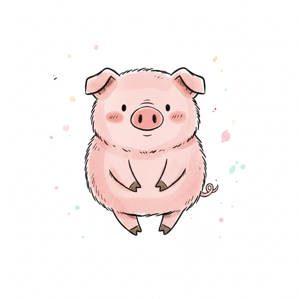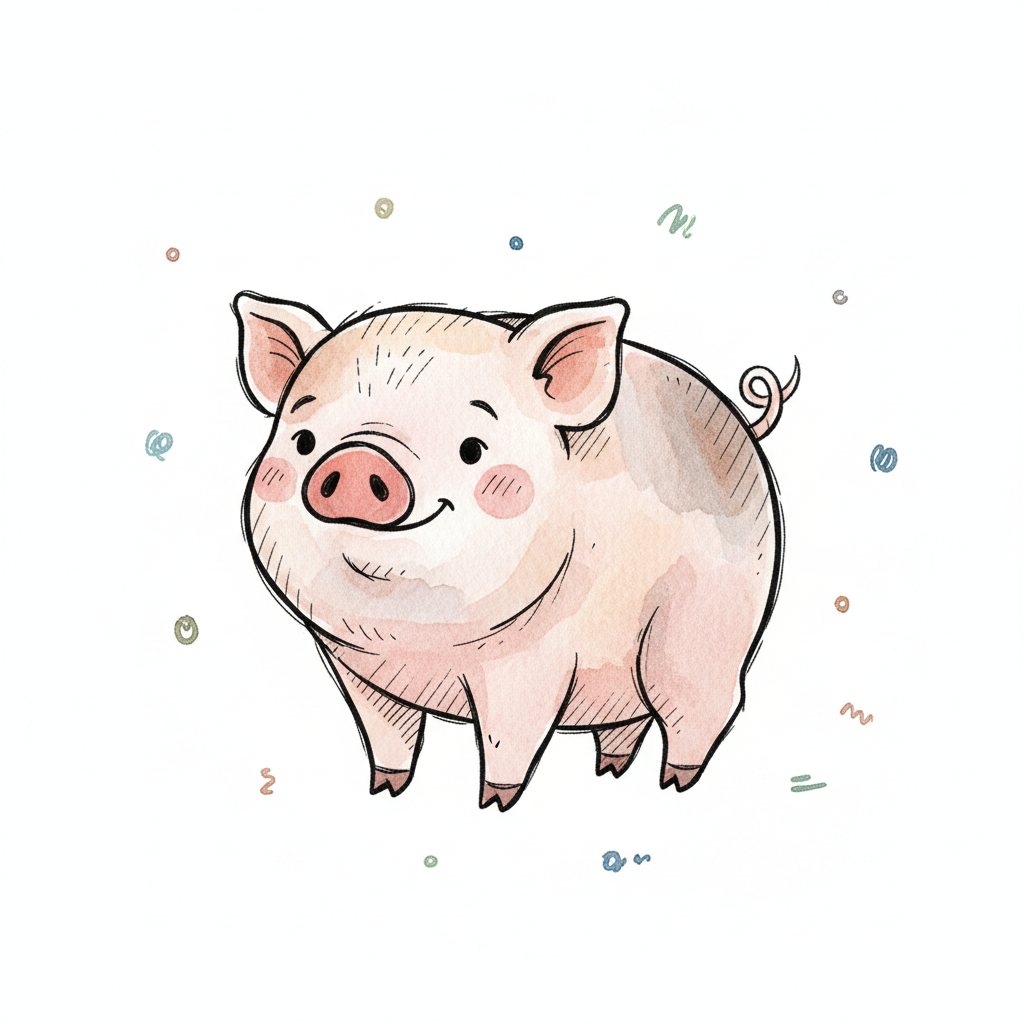 Ein süßes, cartoonhaftes Schwein mit freundlich aussehendem Gesicht.