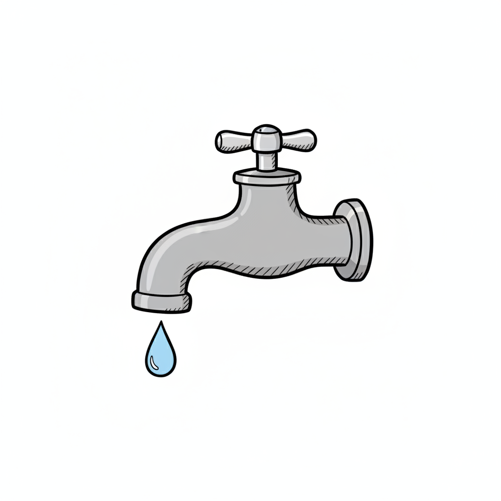 Eine undichte Wasserleitung mit Ventil und einem angeschlossenen grünen Schlauch.