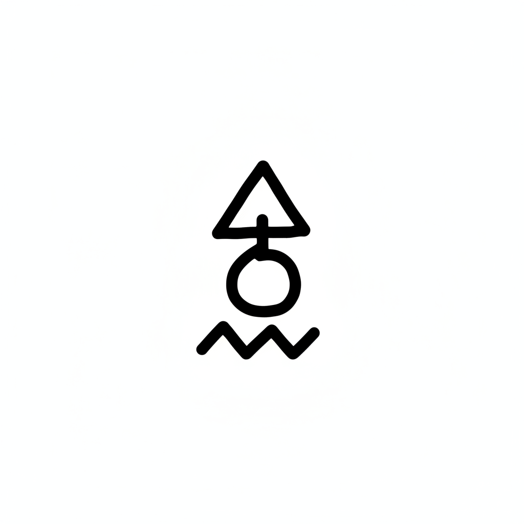 Ein minimalistisches Symbol aus Dreieck, Kreis und Wellenlinie in Schwarz auf Weiß.