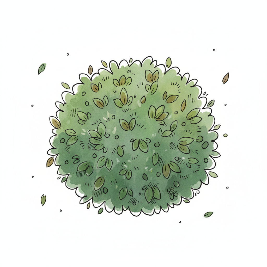 Eine grüne, runde Buschzeichnung mit kleinen Blättern.