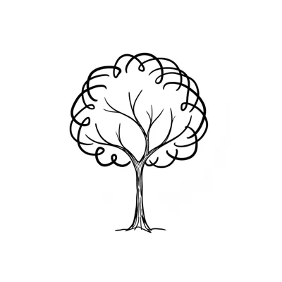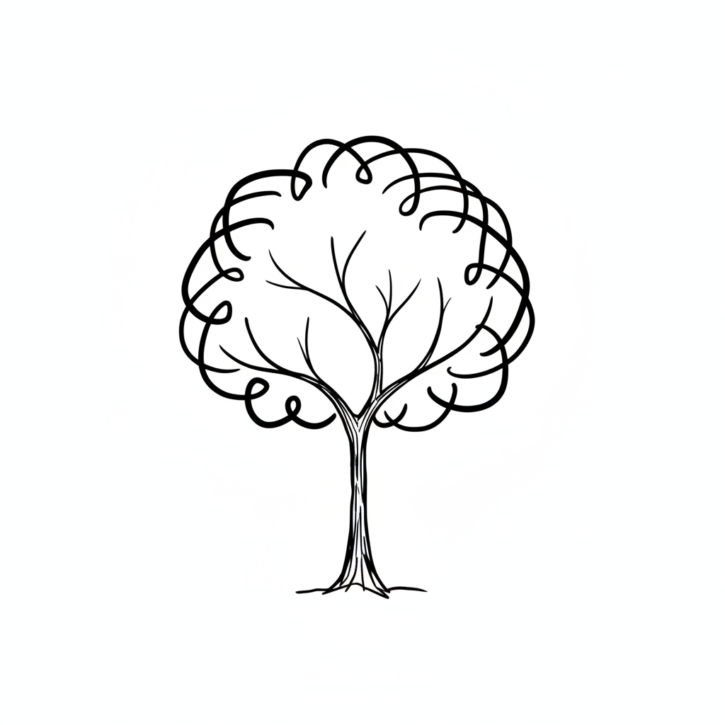 Eine stilisierte Zeichnung eines Baumes mit geschwungenen Ästen.