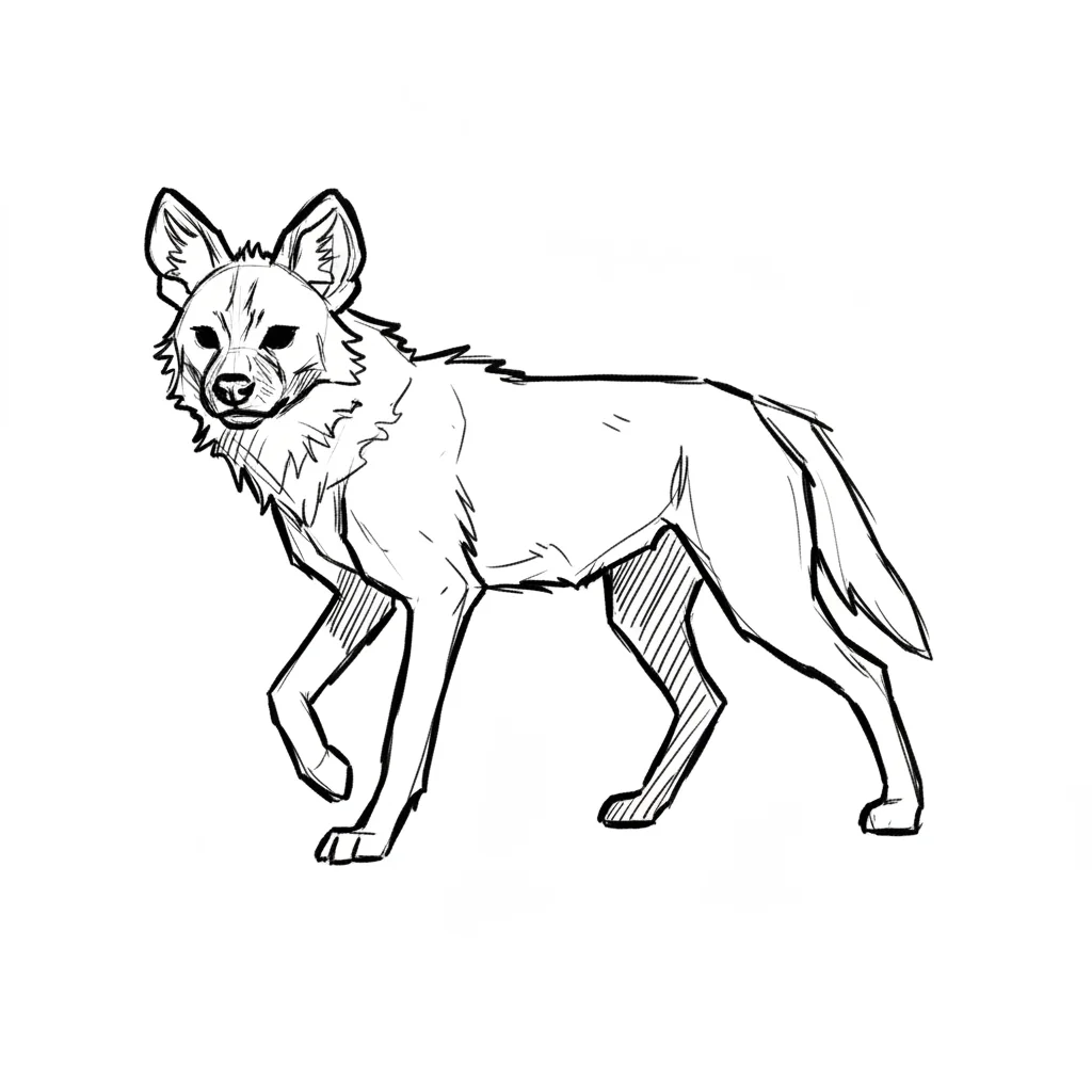 Ein skizzenhaft gezeichneter Hund, der in einer aufrechten Position steht.