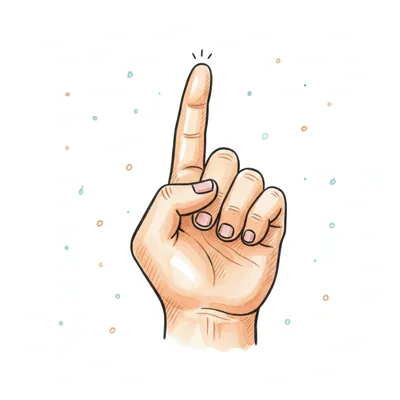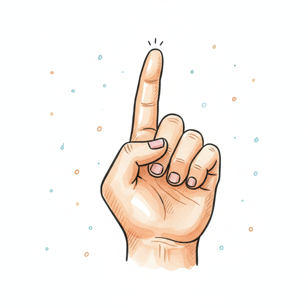 Eine Hand hebt einen Finger nach oben, symbolisiert einen Hinweis oder eine Idee.