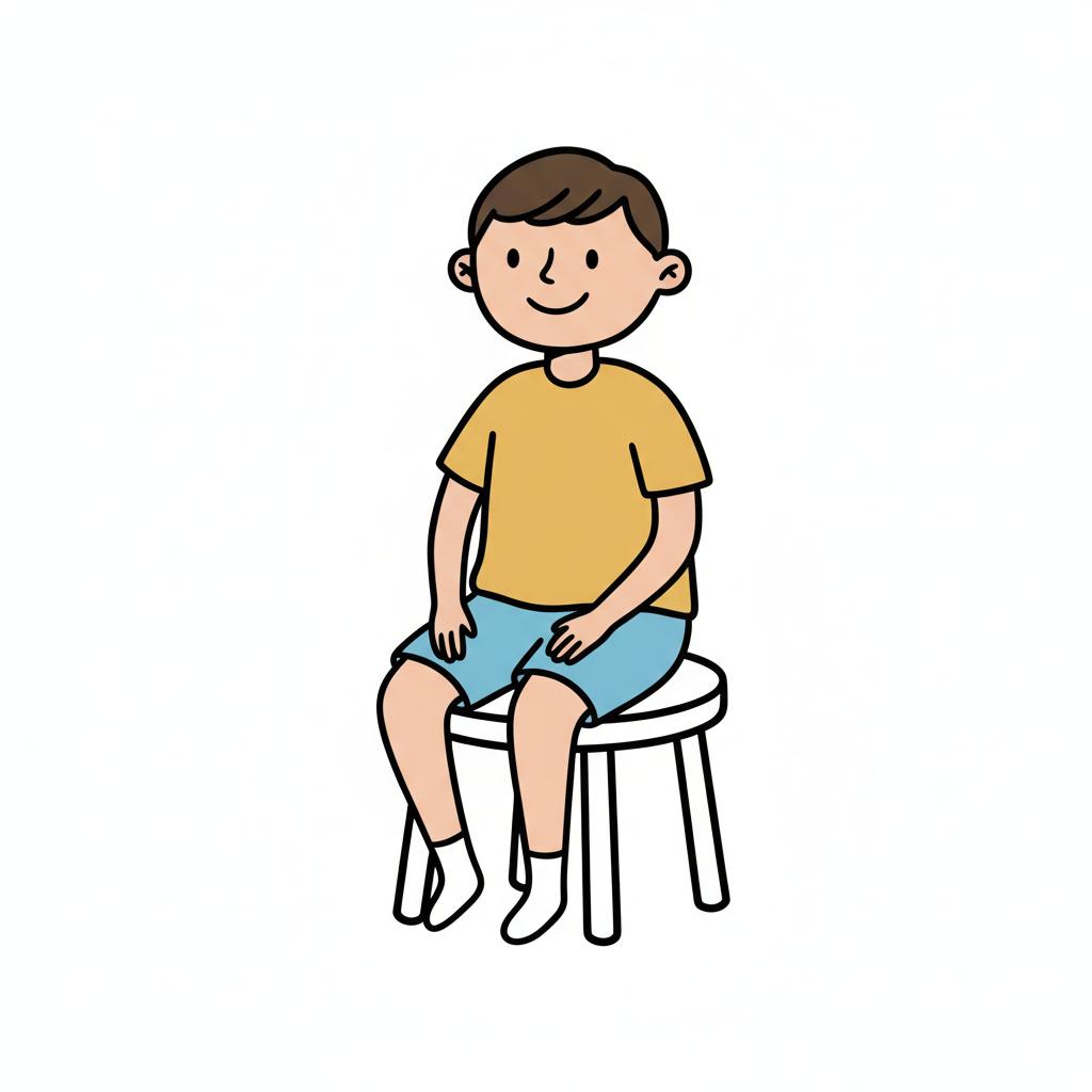 Minimalistische, handgzeichnete Illustration mit deutlich handgezeichneter Wirkung. Handgezeichnete Schwarze Konturen ungleichmäßig und unregelmäßig von Hand gezeichnet. Figuren werden mit stark vereinfachten Körperformen dargestellt. Arme und Beine sind nur als einfache Linien oder Strichformen angedeutet. Flächige Farben ohne Verläufe oder Texturen, ruhige harmonische Farbpalette und reduzierte Details sorgen für eine klare, kindgerechte Darstellung. Saubere, übersichtliche Komposition mit rein weißem Hintergrund.