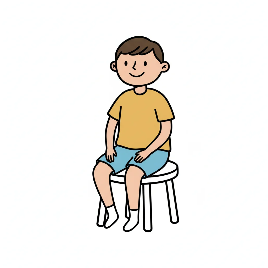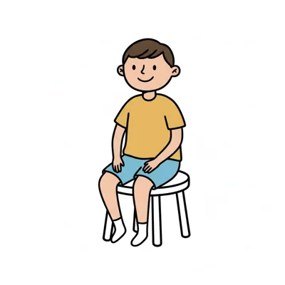 Ein lächelnder Junge sitzt auf einem weißen Stuhl.