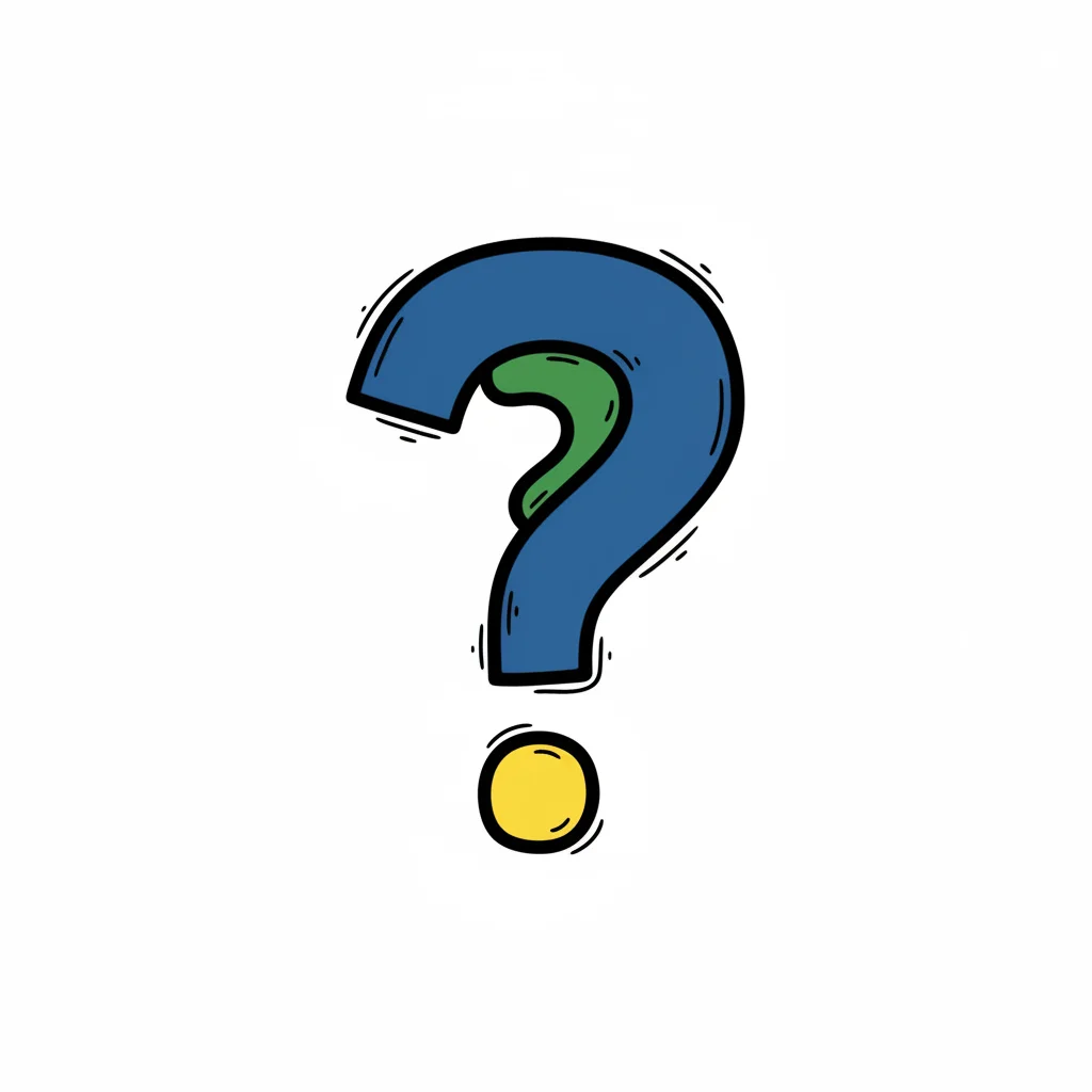 Ein handgezeichnetes, farbiges Fragezeichen in Blau, Grün und Gelb auf weißem Hintergrund.