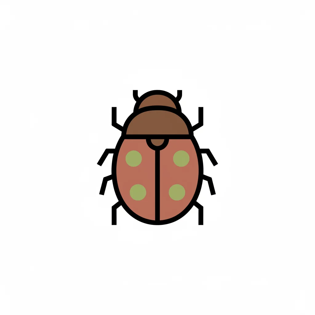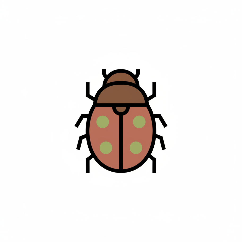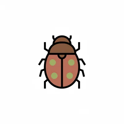 Eine einfache Illustration eines Marienkäfers mit braunem Kopf und rotbraunem Körper mit grünen Punkten.