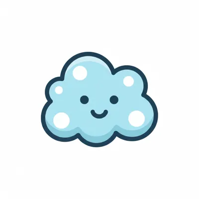 Ein hellblaues, wolkenförmiges Icon mit vier gelben Punkten darin auf weißem Hintergrund.