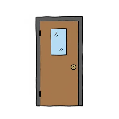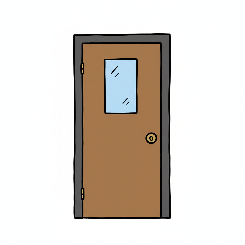 Illustration einer braunen Tür mit einem Fenster.