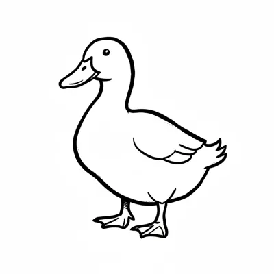 Eine einfache Zeichnung einer Ente in Seitenansicht.