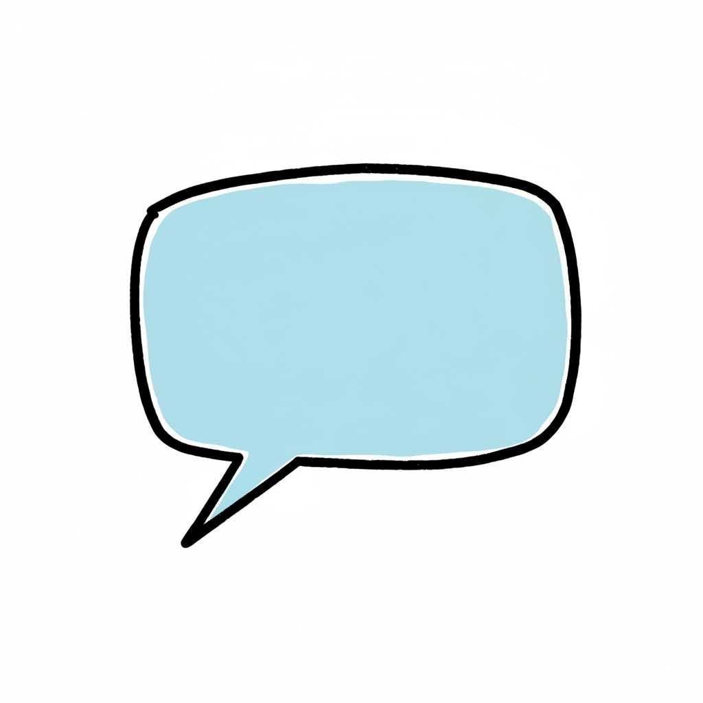 Eine hellblaue Sprechblase mit schwarzem Rand im Comic-Stil auf weißem Hintergrund.