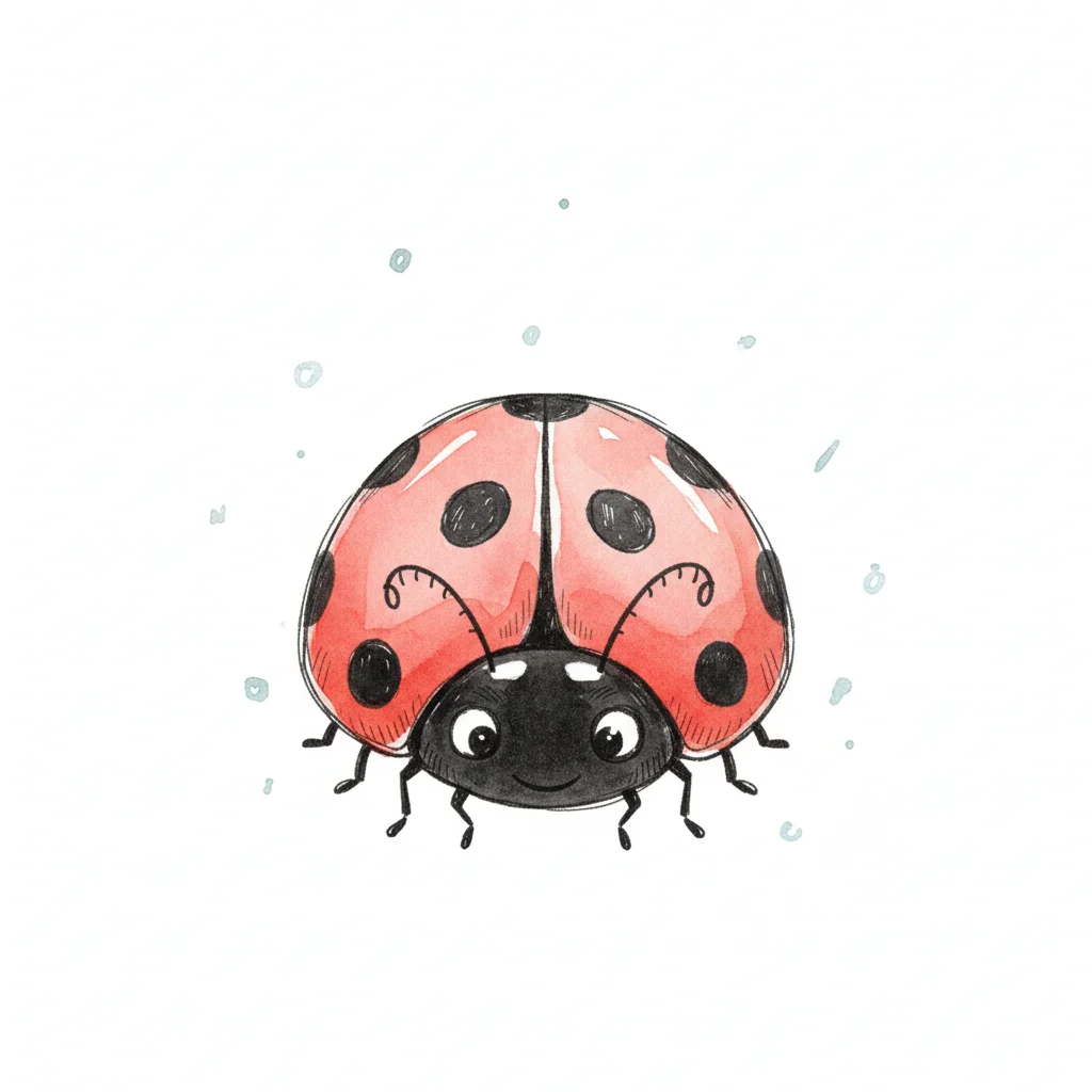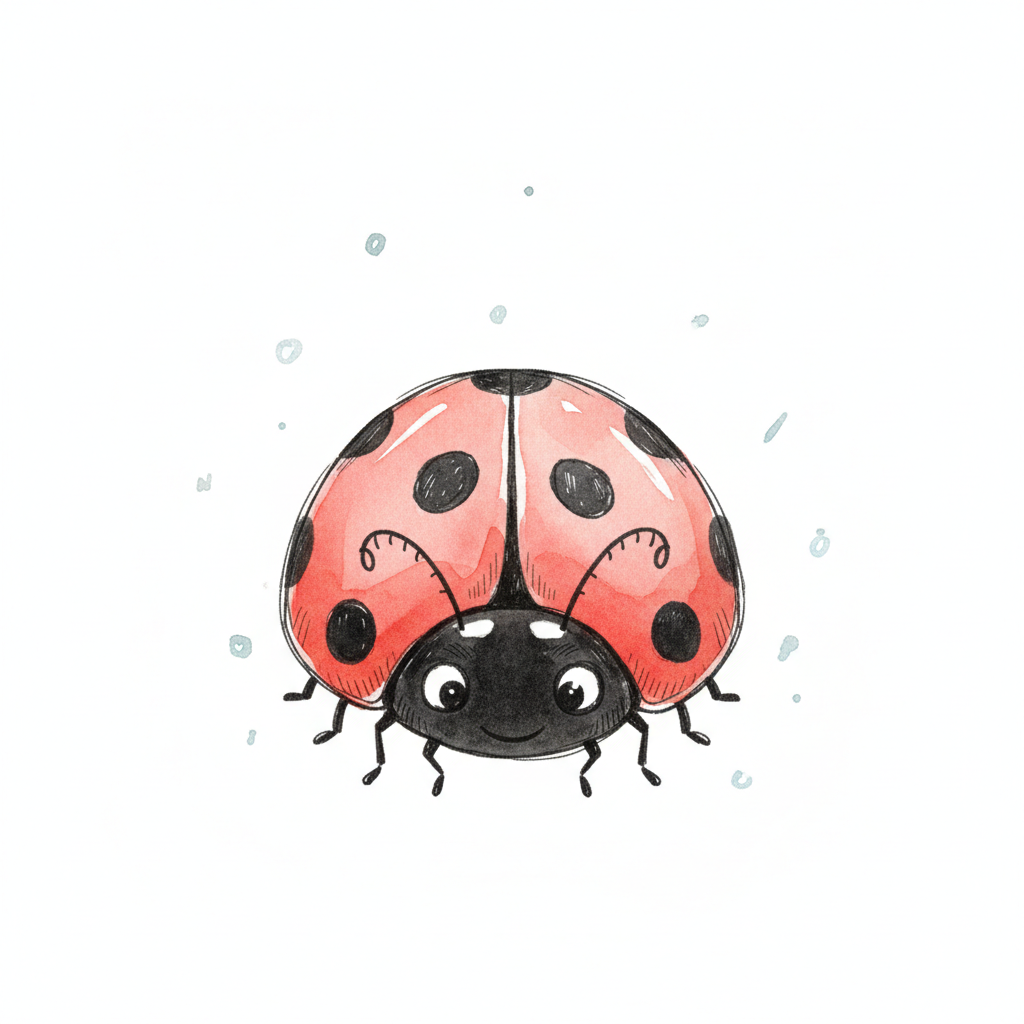 Ein fröhlicher Marienkäfer mit roten Flügeln und schwarzen Punkten.
