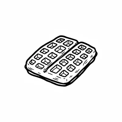 Schwarz-weiße Strichzeichnung einer Waffel mit quadratischen Vertiefungen.