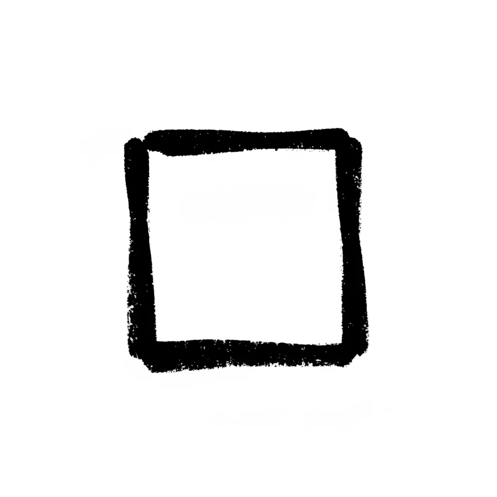 Ein handgezeichnetes, schwarzes Quadrat auf weißem Hintergrund, das wie ein Kästchen aussieht.