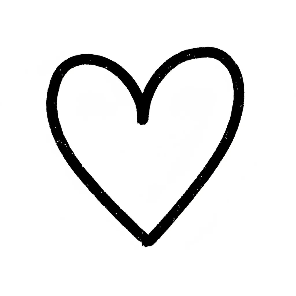 Einfaches, schwarz umrandetes Herz im handgezeichneten Stil auf weißem Hintergrund.