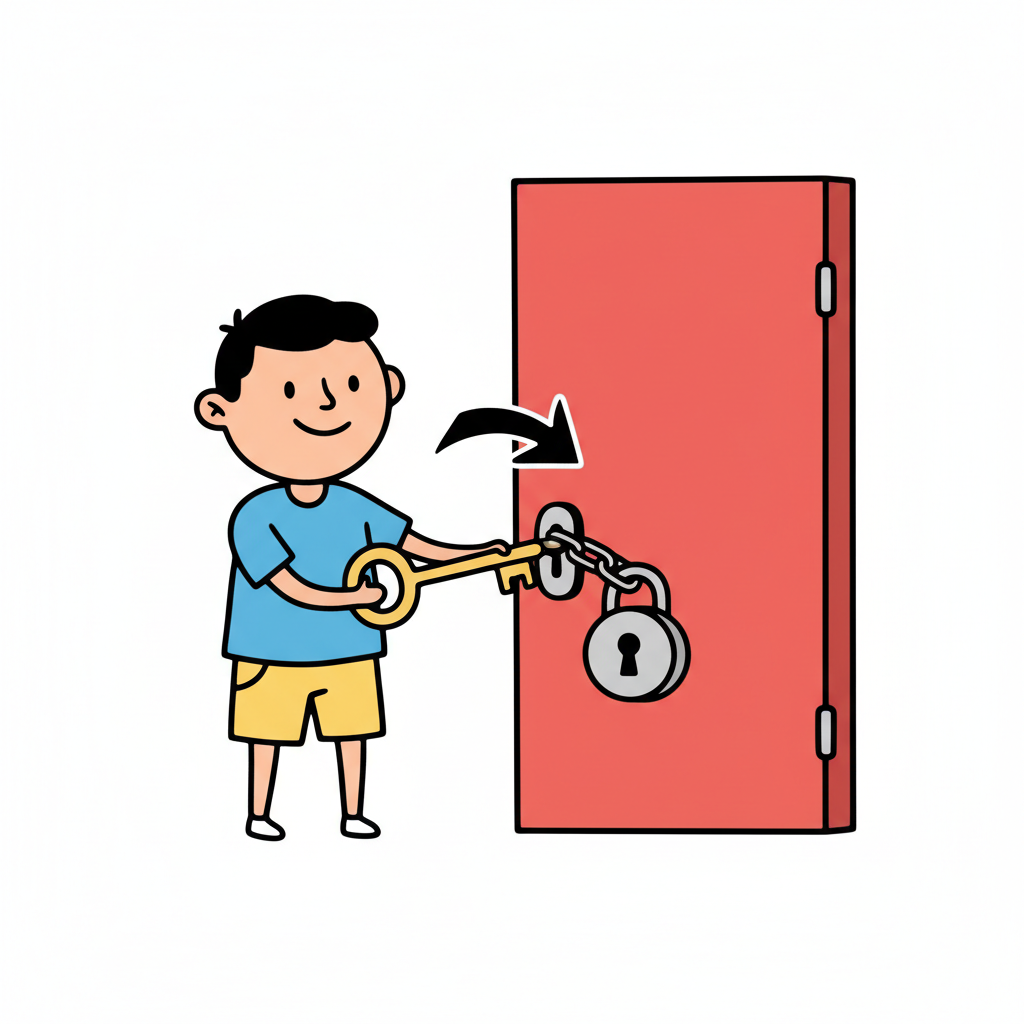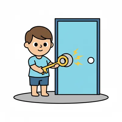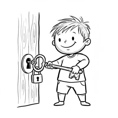 Ein Junge öffnet mit einem Schlüssel eine verschlossene Tür.