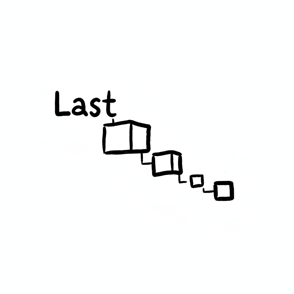 Doodle: 'Last' und eine absteigende Kette von verbundenen Kästchen, die kleiner werden.
