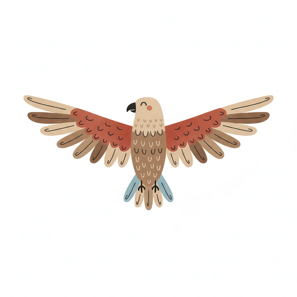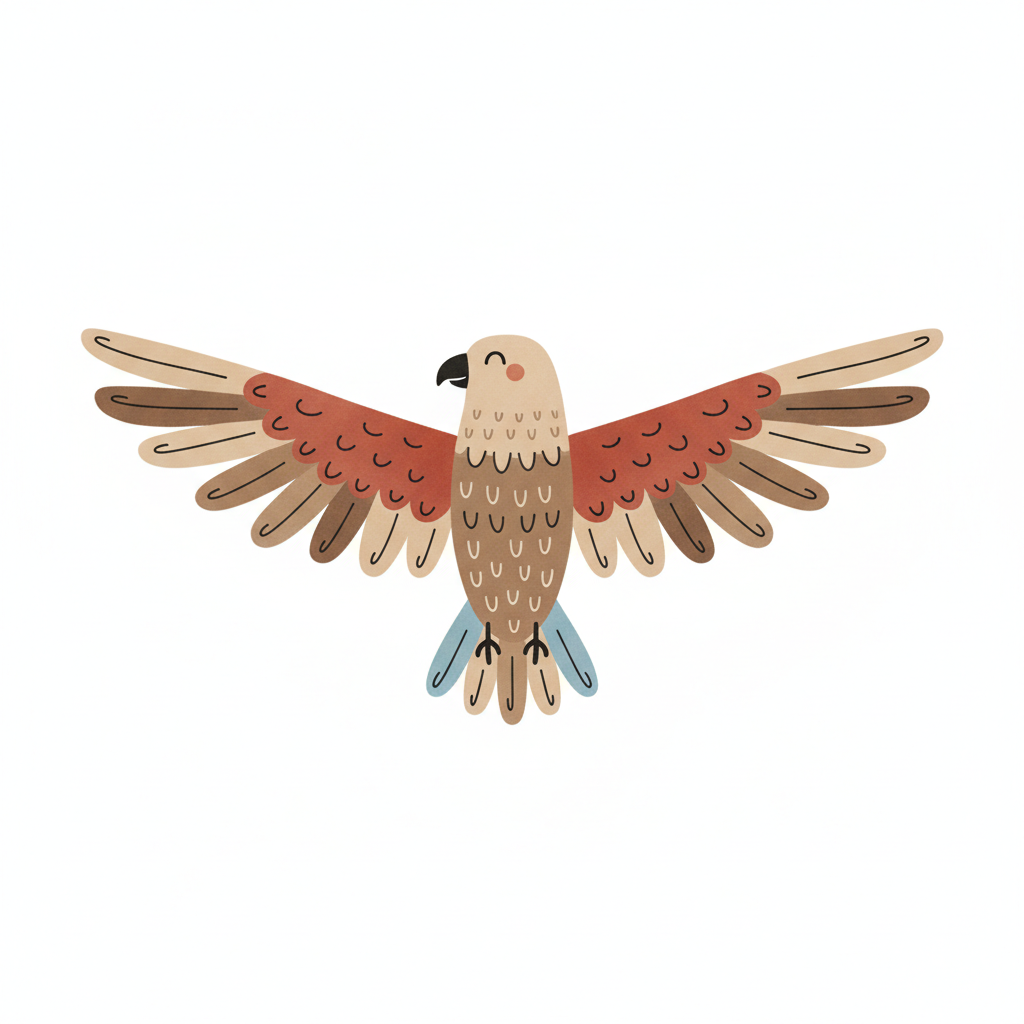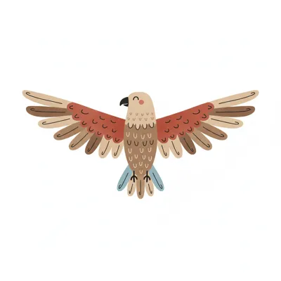 Ein stilisierter Vogel mit ausgebreiteten Flügeln in sanften Farben.