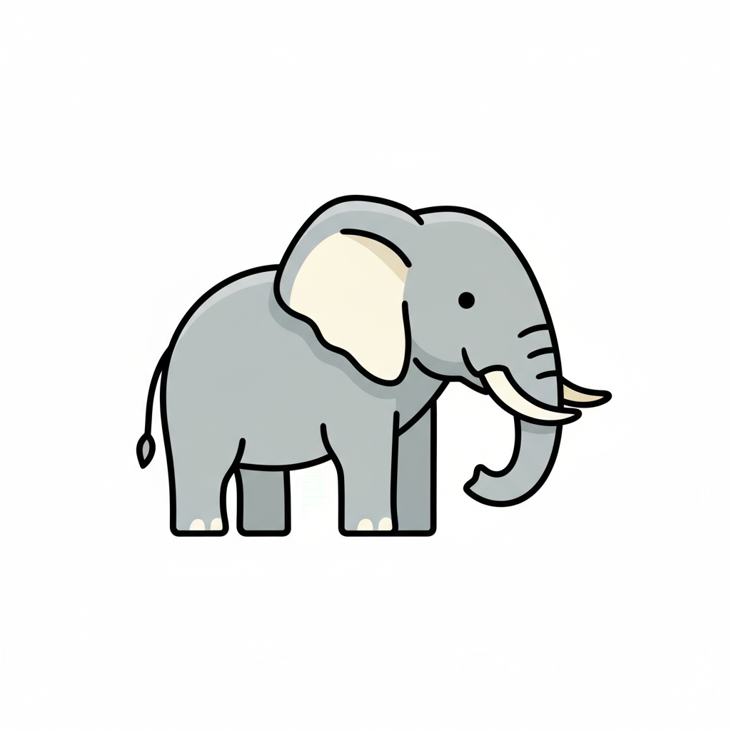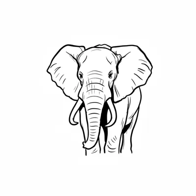 Ein einfacher, skizzenhafter Elefant mit großen Ohren.
