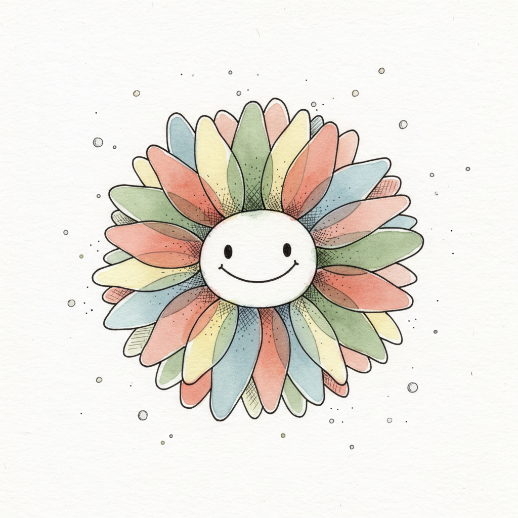 Bunte Blume mit einem lächelnden Gesicht in der Mitte.