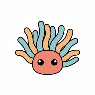 Buntes, cartoonhaftes Tier mit bunten Tentakeln und großen Augen.