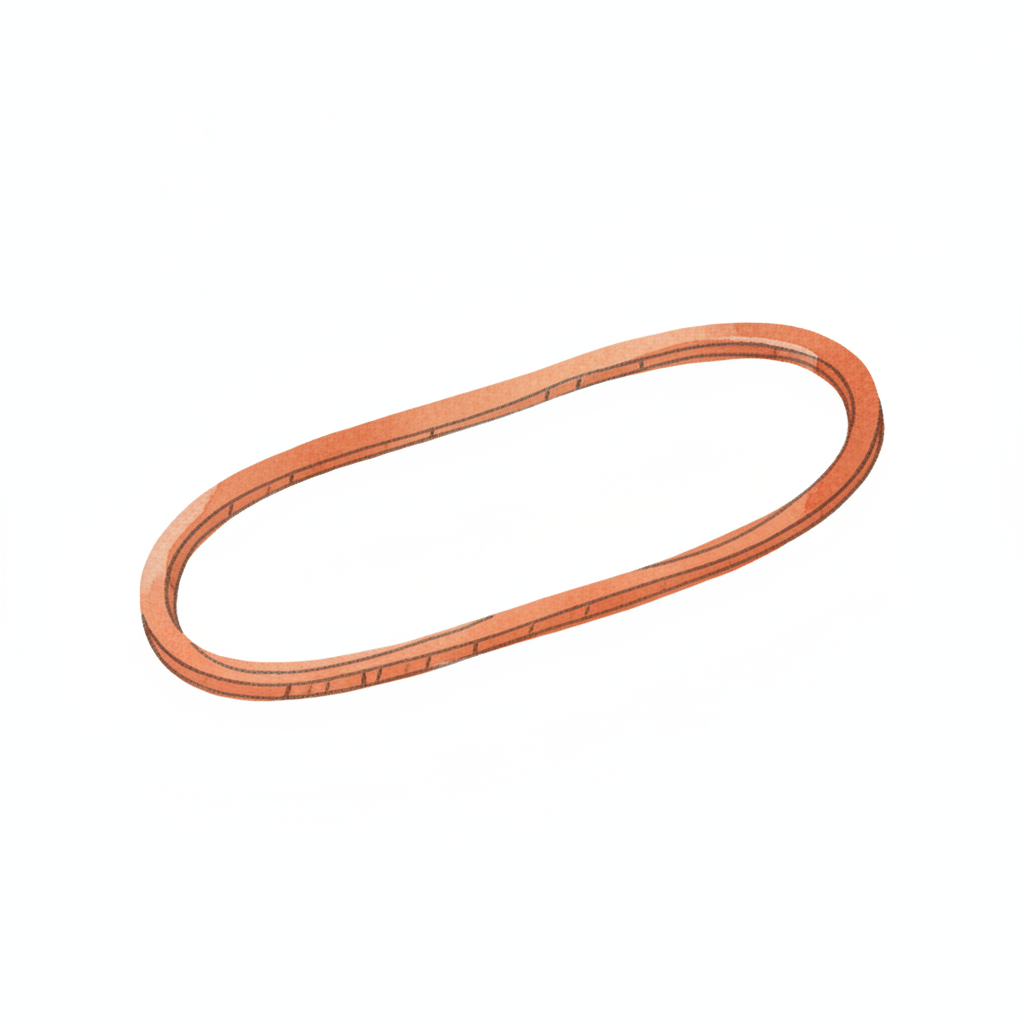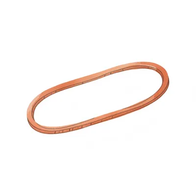 Orangefarbener, ovaler Antriebsriemen oder Dichtung mit leichter Textur auf weißem Grund.