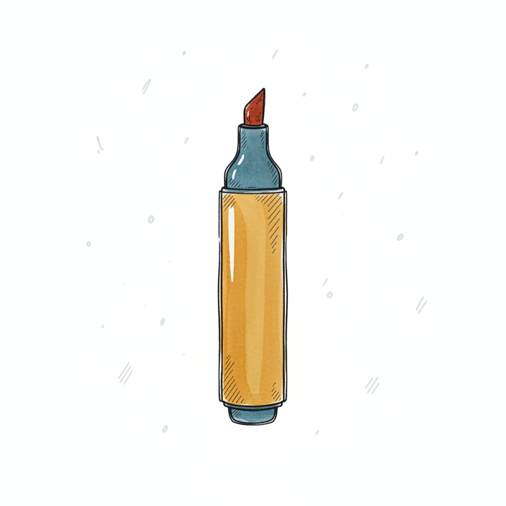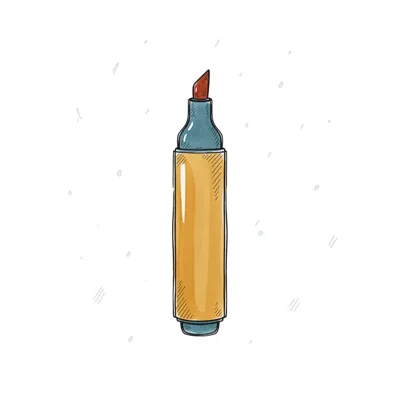 Skizze eines gelben Textmarkers mit blauen Kappen und roter Spitze auf weißem Hintergrund.