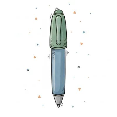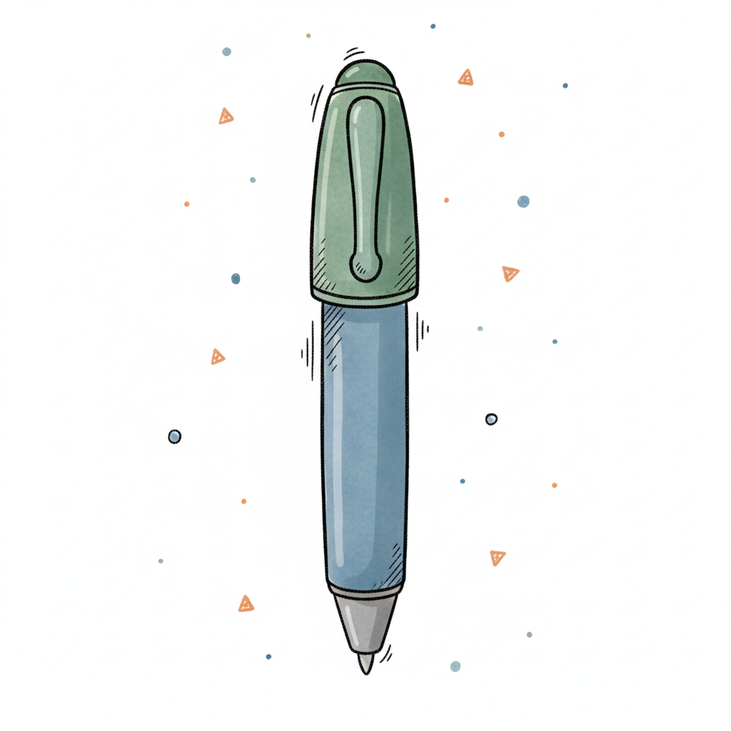 Handgezeichnete Illustration eines blauen Stifts mit grüner Kappe auf weißem Hintergrund.