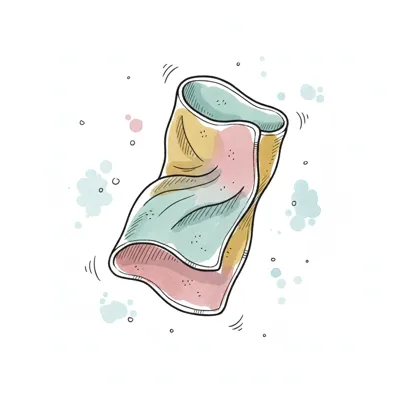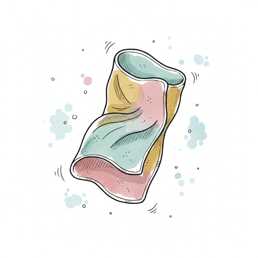Buntes, zerknittertes Tuch mit Aquarell-Spritzern in handgezeichnetem Stil.