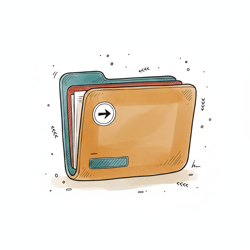 Illustrierte Aktenmappe mit Papieren und einem Pfeil-Symbol, im Skizzenstil.