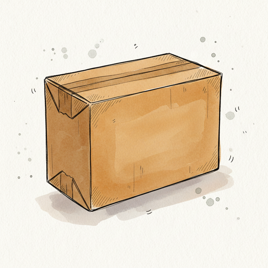 Handgezeichnete braune Kartonschachtel mit Aquarell-Textur auf hellem Hintergrund.