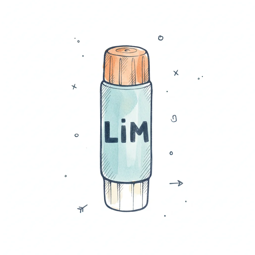 Aquarell-Illustration eines blauen Klebestifts mit orangefarbener Kappe und 'LiM'-Logo.