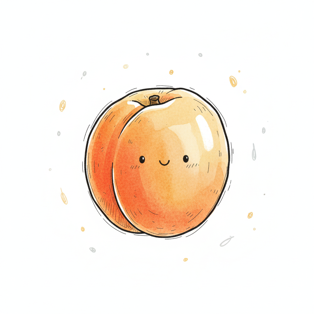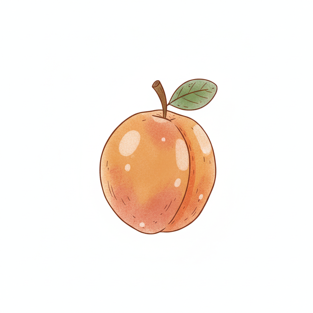 Eine gezeichnete Aprikose mit einem Blatt und leuchtender Farbgebung.