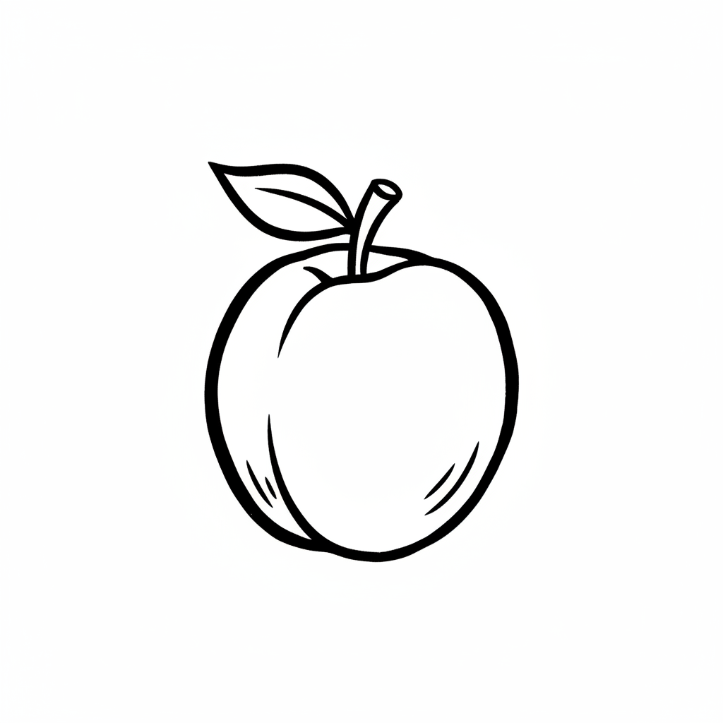 Ein einfaches, schwarz-weiß gezeichnetes Bild eines Apfels.