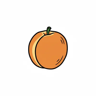 Eine stilisierte, orange Pfirsichillustration mit grünem Blatt.
