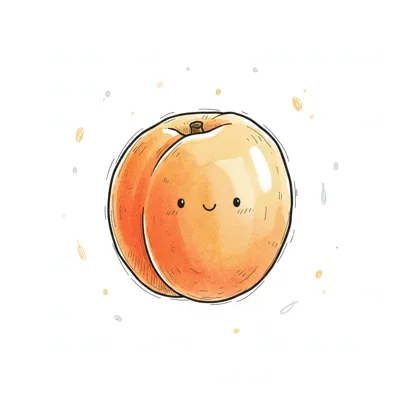 Eine niedliche, cartoonartige Aprikose mit einem lächelnden Gesicht.