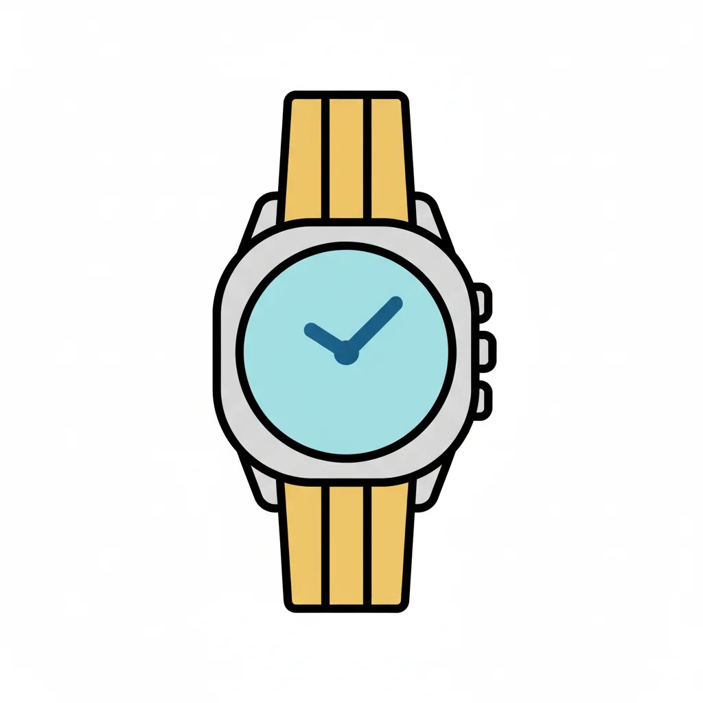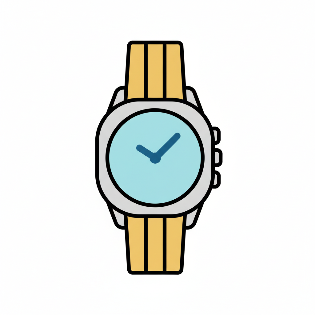 Bunte Vektor-Illustration einer Armbanduhr mit hellblauem Zifferblatt und gelbem Armband.