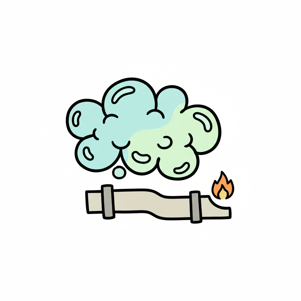 Stilisierte Darstellung einer brennenden Gasleitung mit aufsteigendem Rauch/Dampf.