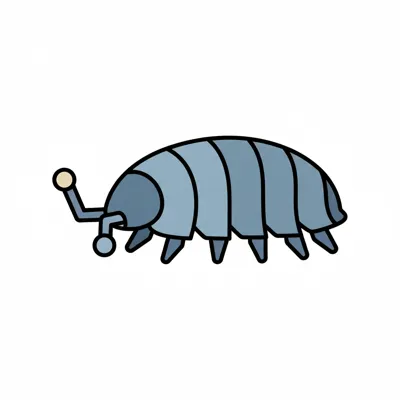 Eine Zeichnung eines Käfers mit runder Form und segmentiertem Körper.