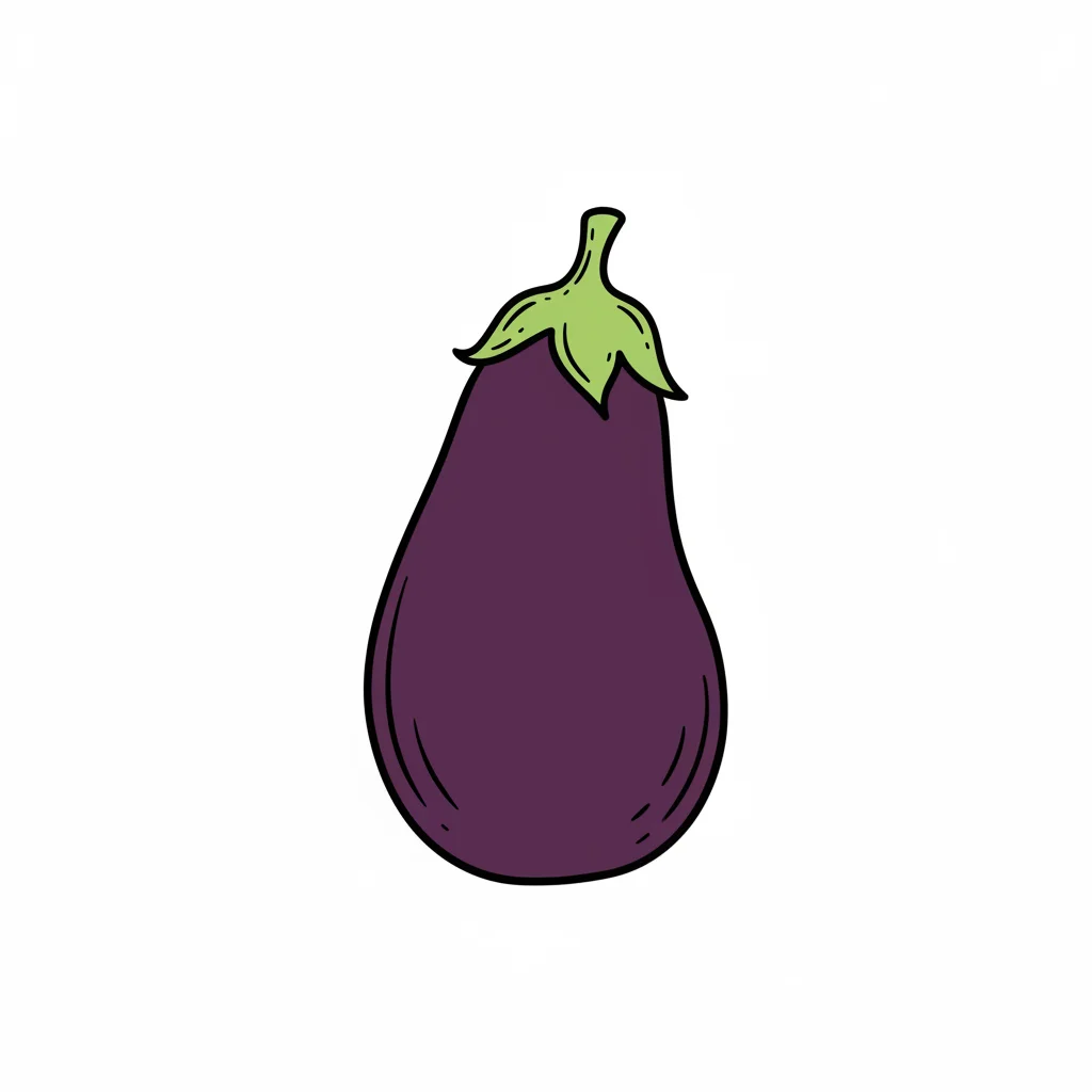Eine stilisierte Aubergine mit lila Körper und grüner Kappe.