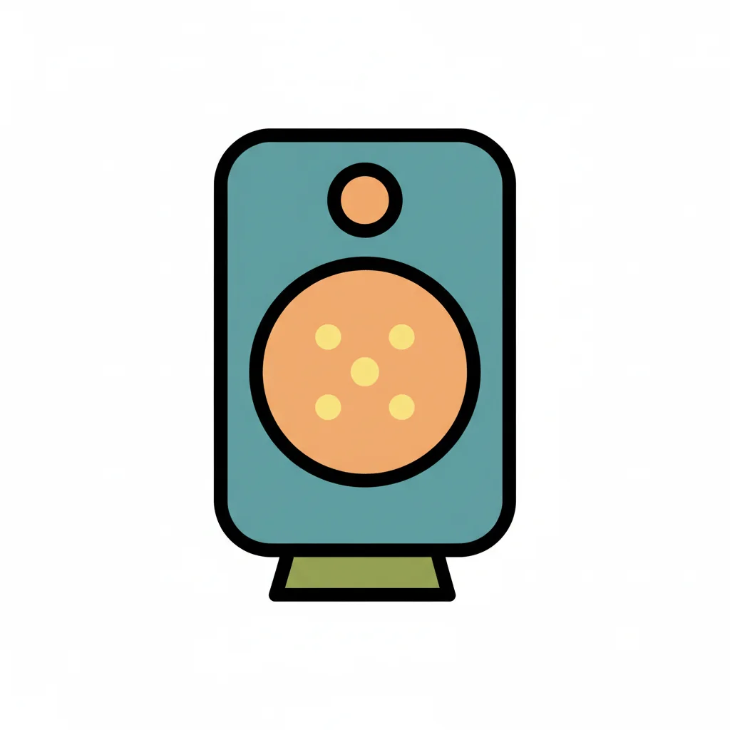 Bunte Lautsprecher mit einem runden Lautsprecher und schlichten Konturen.