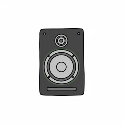 Ein einfaches, skizziertes Lautsprecher-Design in Schwarz.