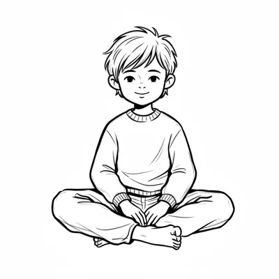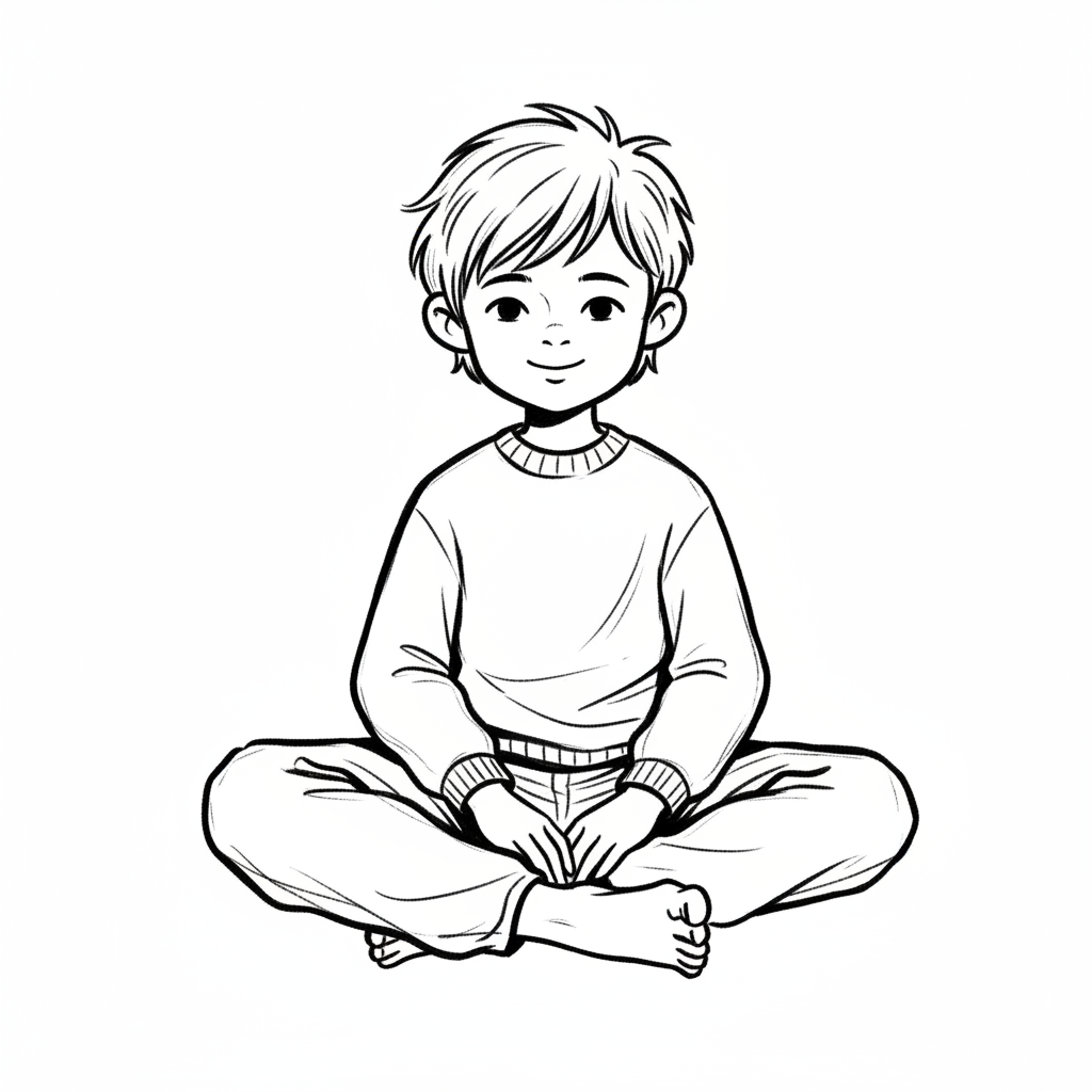 Ein junger Junge sitzt im Schneidersitz und lächelt freundlich.