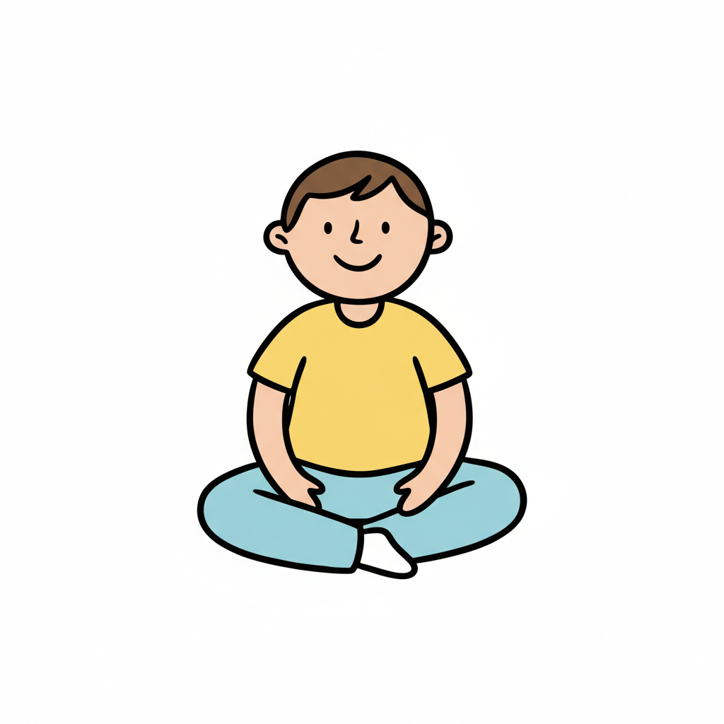 Ein Junge sitzt lächelnd im Schneidersitz.