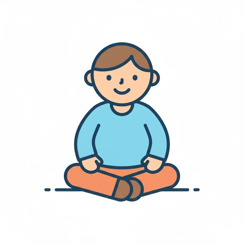 Ein lächelnder Junge sitzt im Schneidersitz.