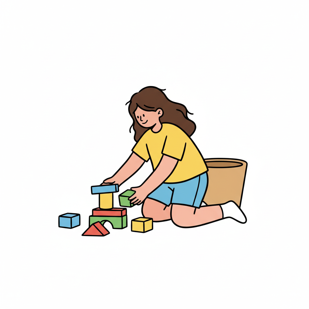 Niedliche, kindgerecht illustrierte Szene mit einem Kind oder einer Person als Hauptfigur, vor rein weißem Hintergrund, im frech-nordischen Aquarell-Skizzenstil. Klare, leicht wackelige Tuschekonturen, sichtbare Pinsel- und Strichtextur, dezente Schraffuren, weiche handgemalte Farbflächen in gedeckten Farben. Einfache, runde Formen. Keine harten Schatten, sondern sanfte, transparente Aquarellschichten. Leicht raue, handgezeichnete Linien statt glatter Vektorkanten. Subtile, vereinzelte Kritzelpunkte oder kleine Details im Hintergrund (wie Pünktchen oder feine Striche), aber keine echte Umgebung oder Landschaft. Die Figur ist mittig zentriert. Insgesamt charmant, humorvoll, warm und handgemacht wirkend. WICHTIG: Das Bild darf ABSOLUT KEINEN TEXT, KEINE BUCHSTABEN und KEINE ZAHLEN enthalten.