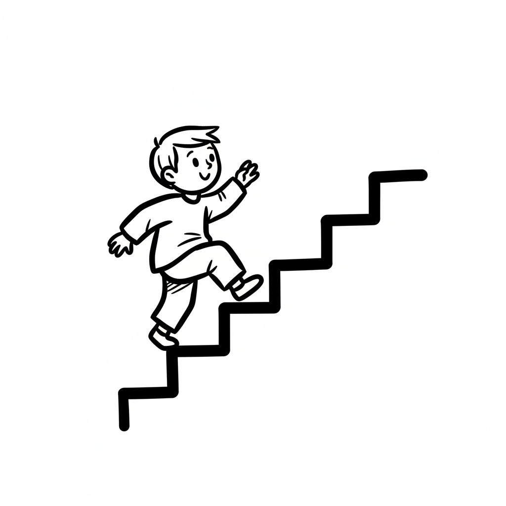 Ein Junge geht fröhlich eine Treppe hinauf.