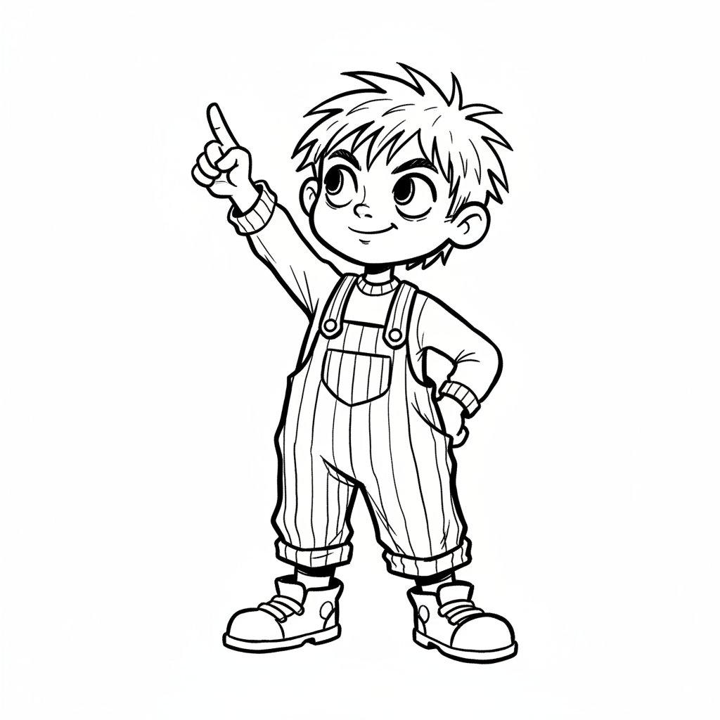 Ein Junge mit zotteligen Haaren zeigt nach oben.